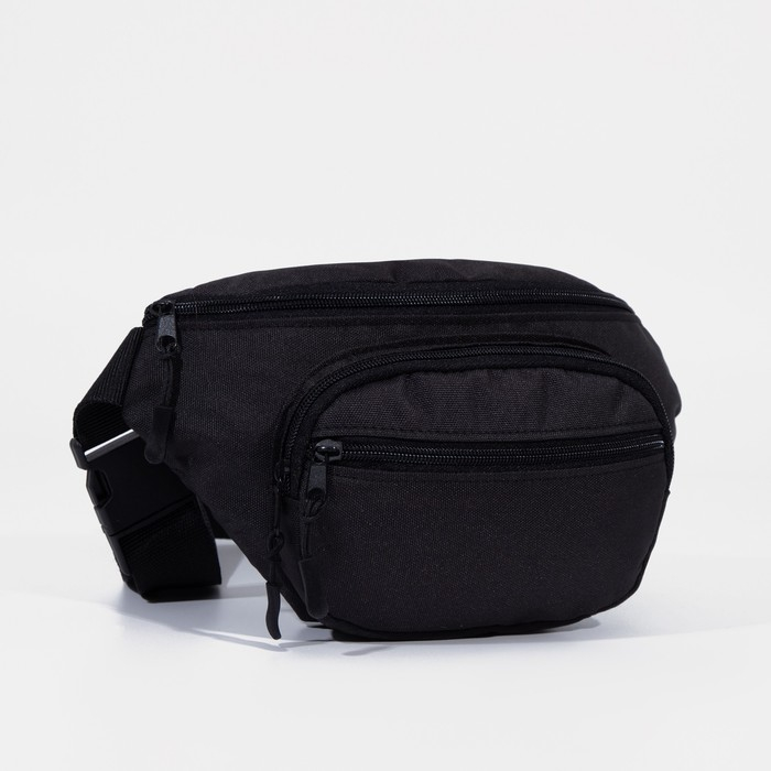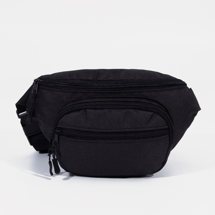 Поясная сумка на молнии, 1 отдел, 2 наружных кармана, регулируемый ремень, цвет чёрный