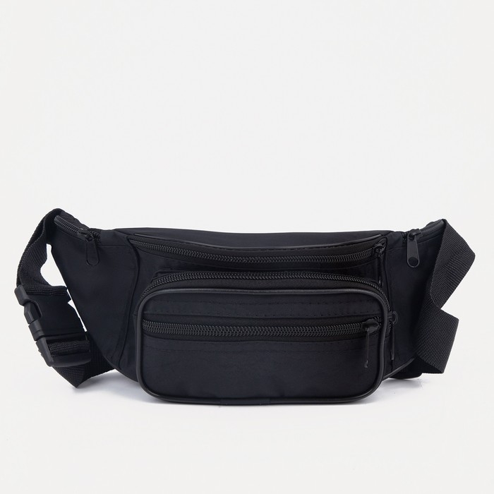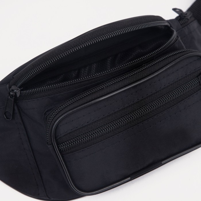 Поясная сумка на молнии, 3 кармана, цвет чёрный