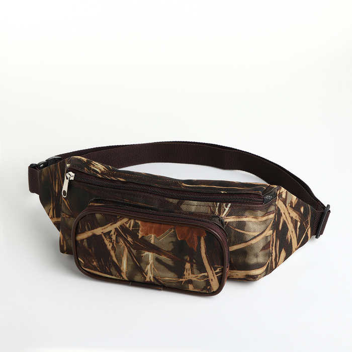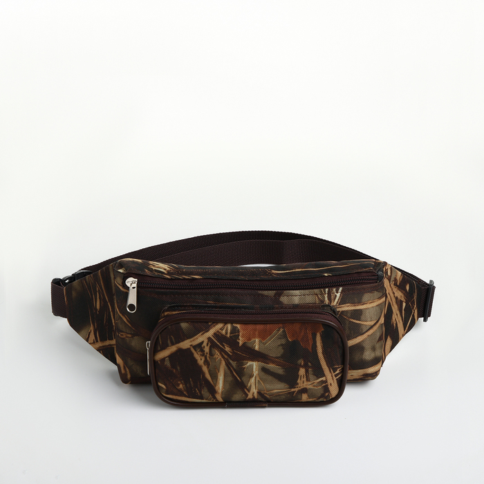 Поясная сумка на молнии, наружный карман, цвет хаки/камуфляж