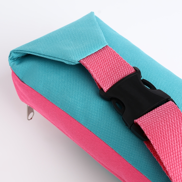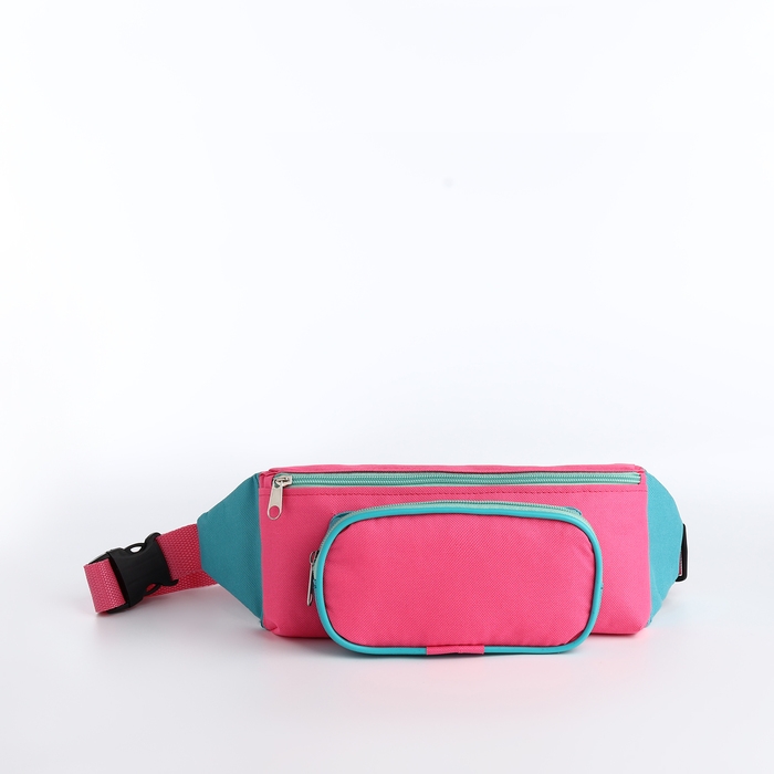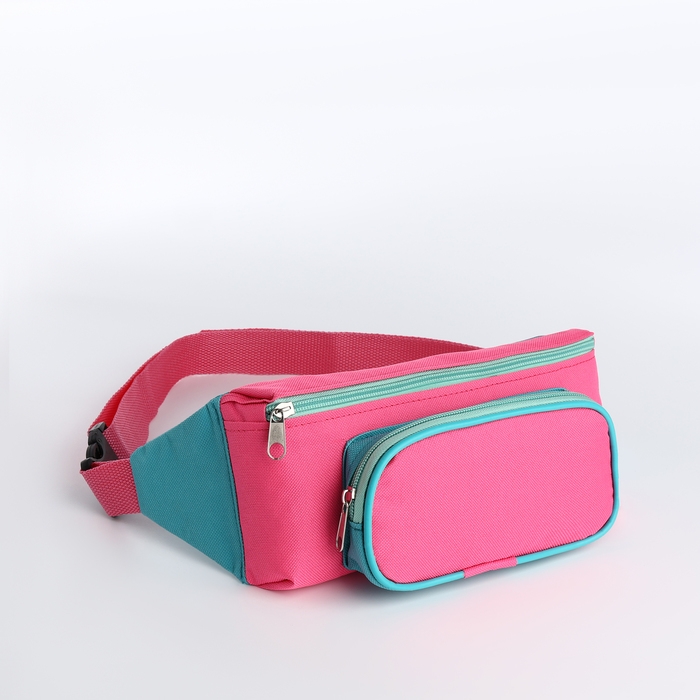 Поясная сумка на молнии, наружный карман, цвет розовый/бирюзовый