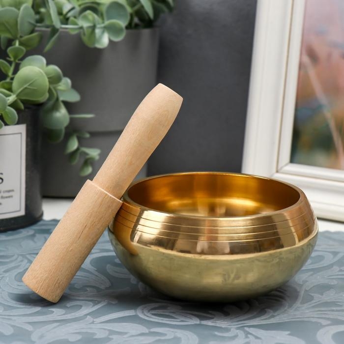 Поющая чаша металл золотая глянец с резонатором 4,5х8х8 см