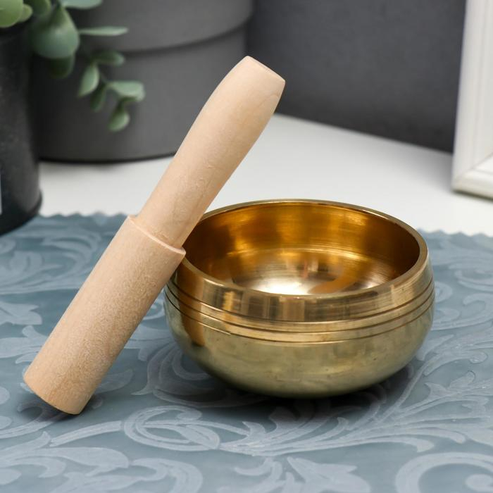 Поющая чаша металл золотая глянец с резонатором вн.диаметр чаши - 8,8 см 5,5х10х10 см