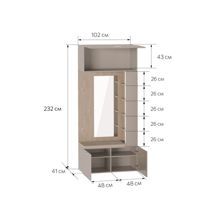 Прихожая "Джерси" вешалка с зеркалом, 1024х416х2325,Капучино