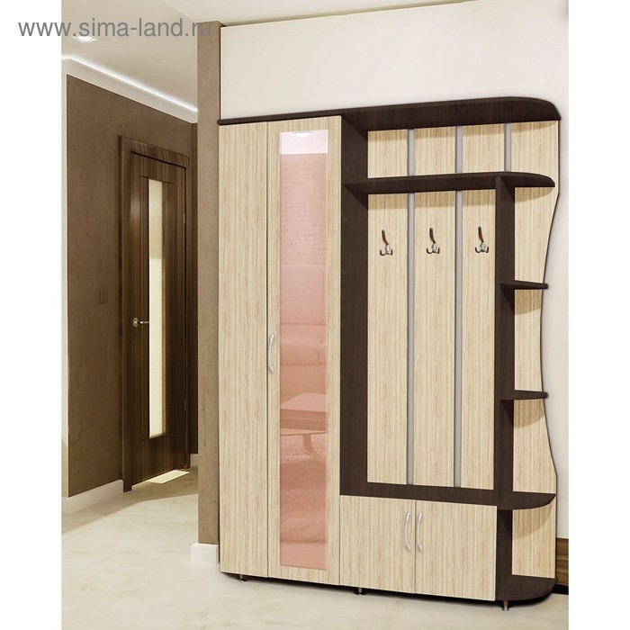 Прихожая Ксения -1 левая, 2150х1500х385, Венге/Дуб молочный