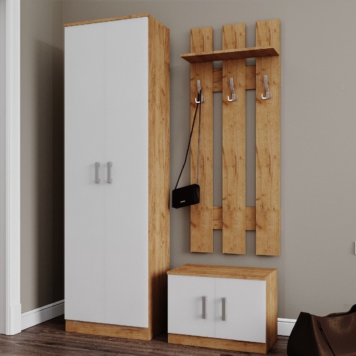 Прихожая Осирис, 1182х370х1994, Дуб крафт золотой/Белый