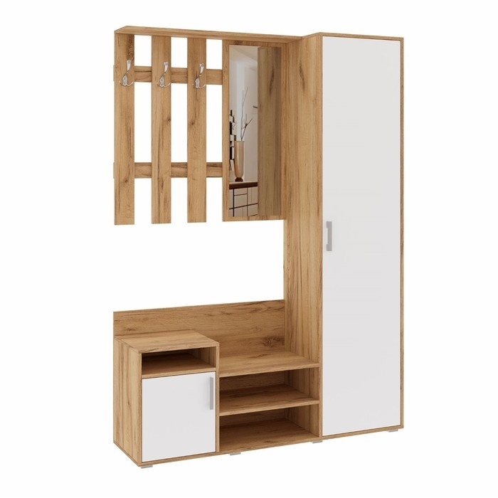 Прихожая Визит, 1440х400х2052, Белый глянец/Дуб крафт