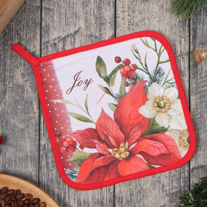 Прихватка Этель "Пуансеттия" 19х19 см, 100% хл, ватин 250 г/м2