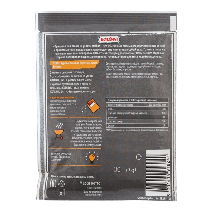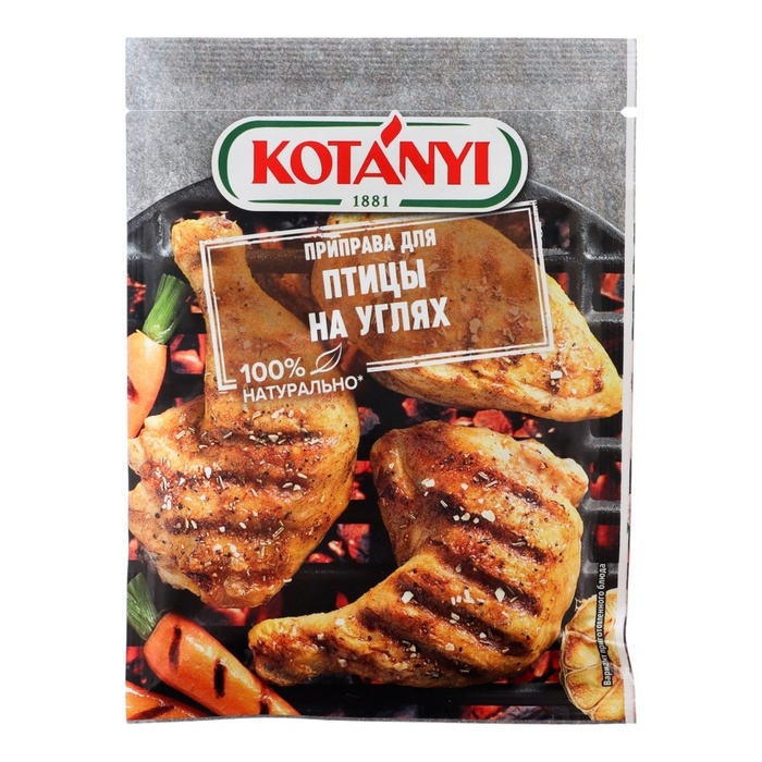 Приправа для гриля и шашлыка Птица на углях KOTANYI это изысканная смесь высококачественных специй и ароматных трав, придающая курице и другому мясу птицы особый вкус.