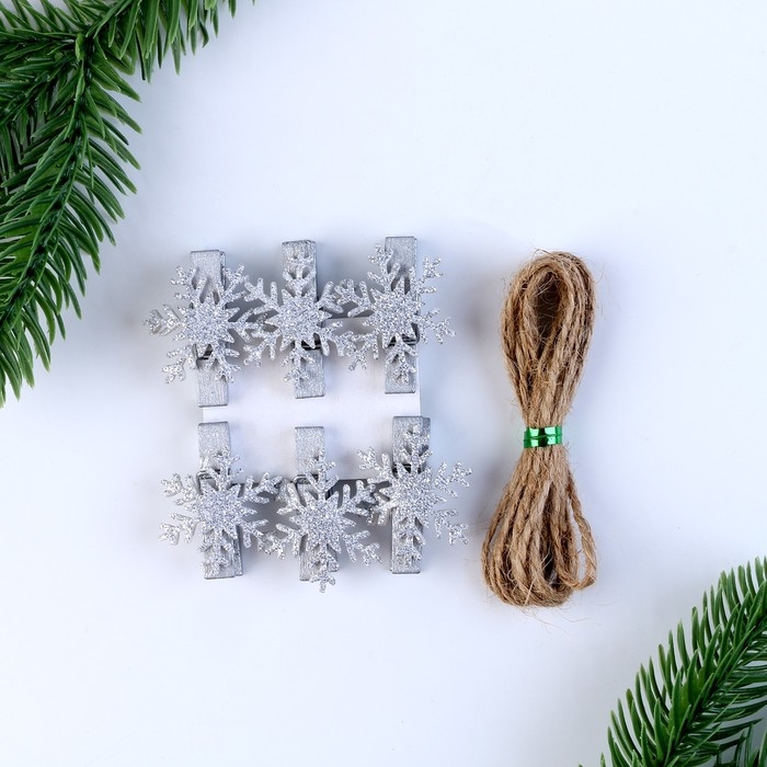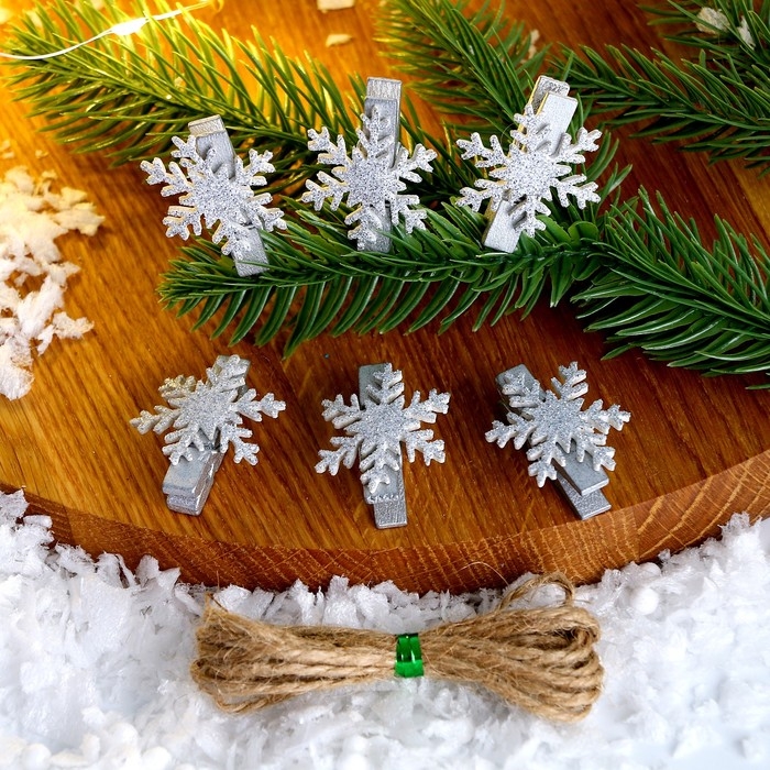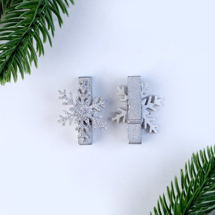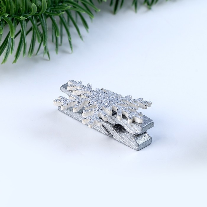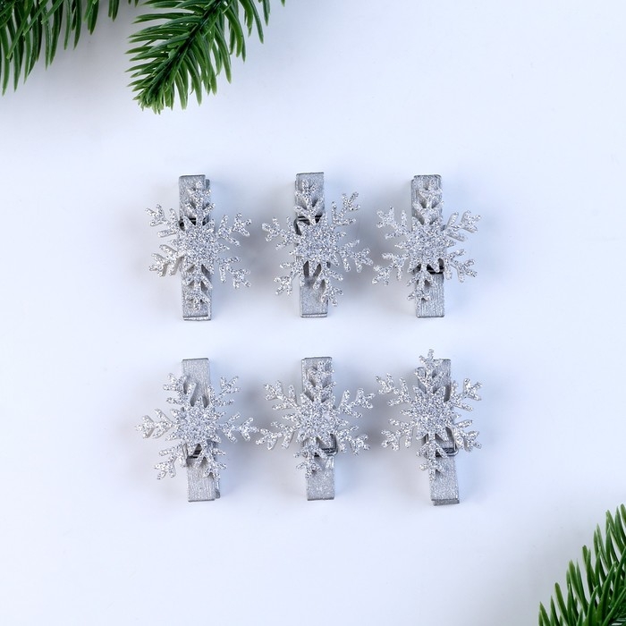 Прищепки для декора «Снежинки» серебряные, 6 шт.
