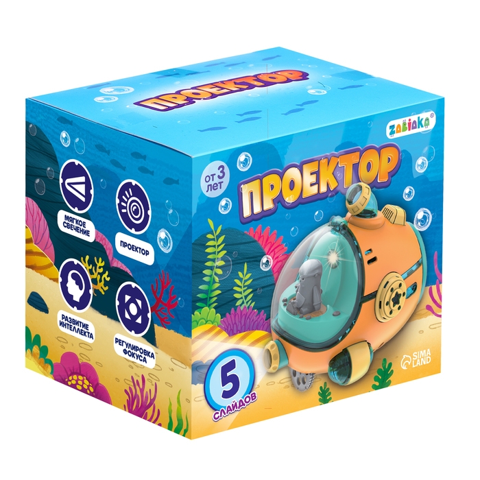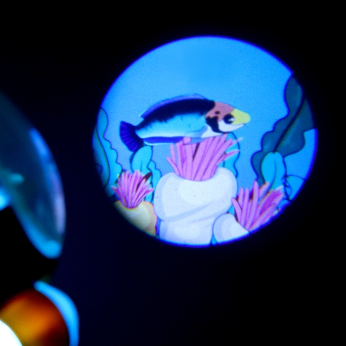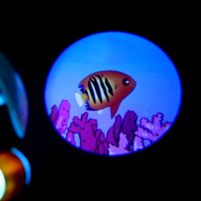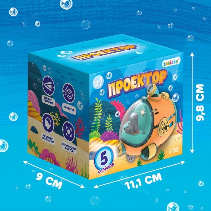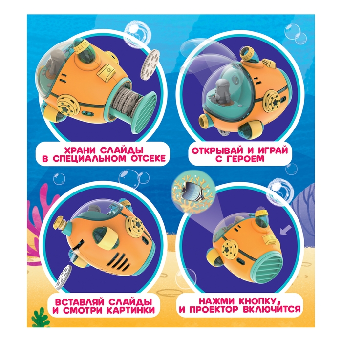- Игрушка проецирует 40 картинок с мультяшными морскими обитателями.