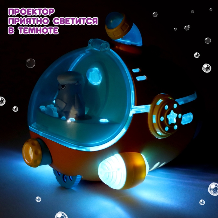 - Батискаф светится в темноте. Изделие можно использовать в качестве ночника.