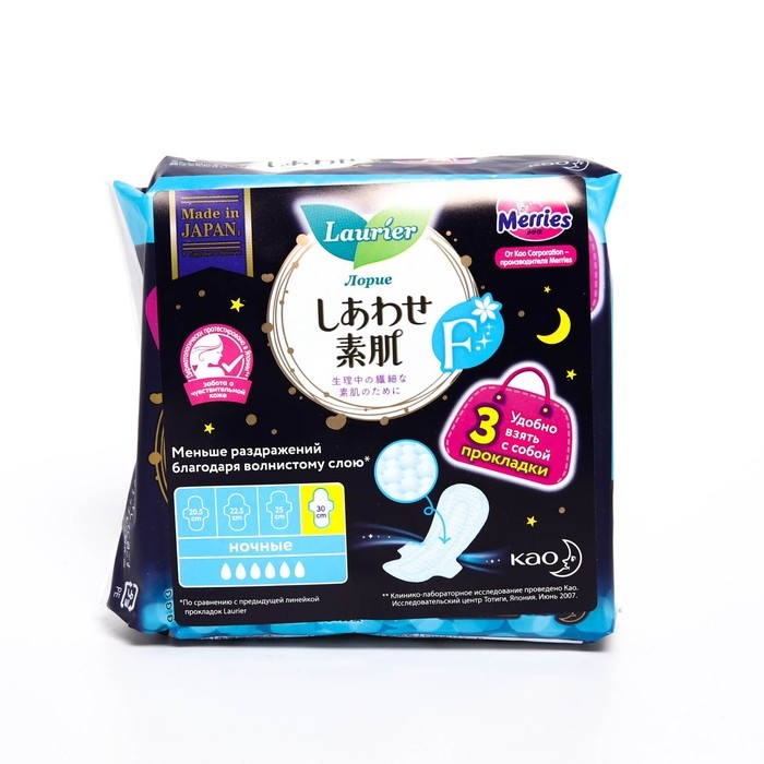 Прокладки гигиенические Laurier F ночные с крылышками 30 см, 3 шт.