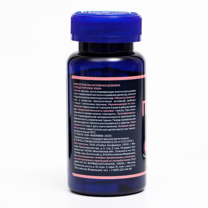 Пролин 1000, L-Proline, для эластичной кожи и предотвращения старения, 90 капсул по 400 мг