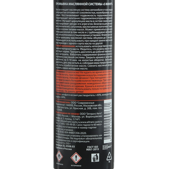 Промывка масляной системы Элтранс 5 МИНУТ, 335 мл