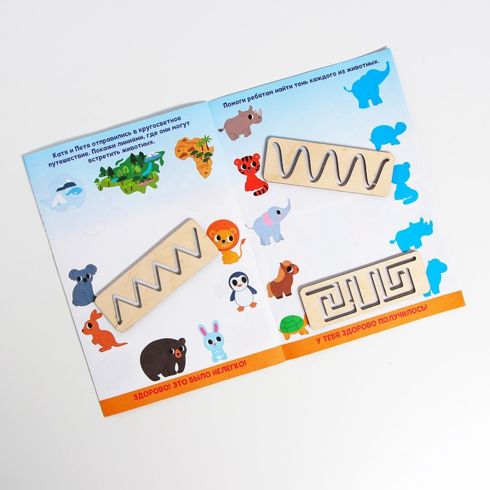 С помощью трафаретов ребёнок в игровой форме освоит начальные навыки письма и потренируется правильно ставить руку. Предложите ребёнку увлекательное задание, например помоги ребятам найти тень каждого из животных.
