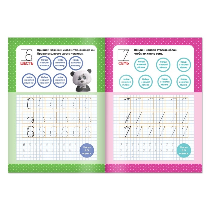 Внутри вы найдёте интересные задания. Выполняя их, малыш подготовит руку к письму. Также в книге есть забавные наклейки с любимыми героями мультфильма «Маша и Медведь».