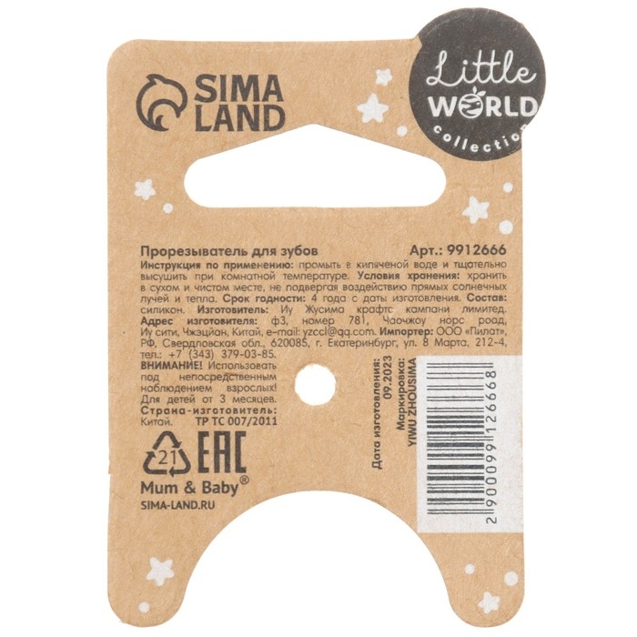 Товар изготовлен из прочного и безопасного силикона, не содержащего бисфенола А. Рекомендовано для детей от 3 месяцев.