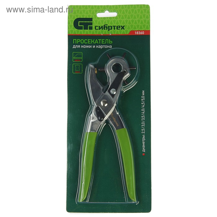 Просекатель (дырокол) для кожи и картона "Сибртех" 18360, d=2.5-5 мм, Сталь 40 Cr (40 Х)