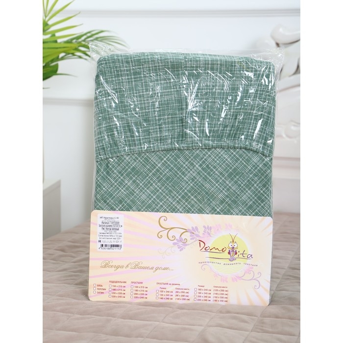 Простыня на резинке Атра 140х200х20, Контур, зеленый, бязь 120г/м, хл100%