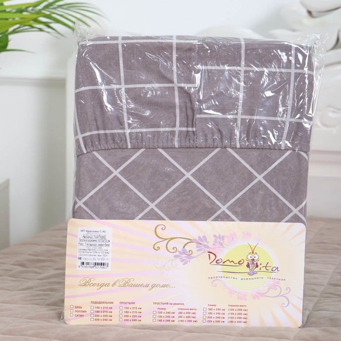 Простыня на резинке Атра 140х200х20, Таттерсол, серо-беж, бязь 120г/м, хл100%