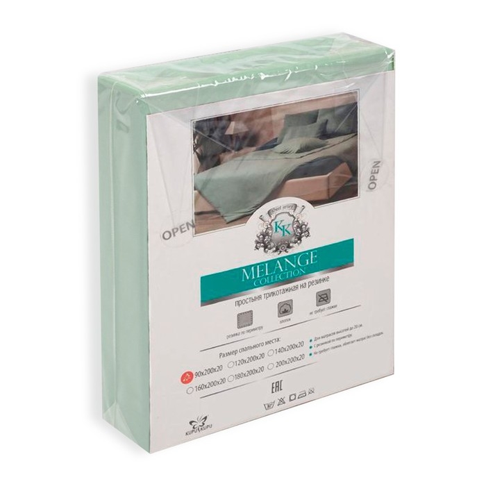 Простыня на резинке «Купу-купу», 80х200х20 см, ментол, трикотаж
