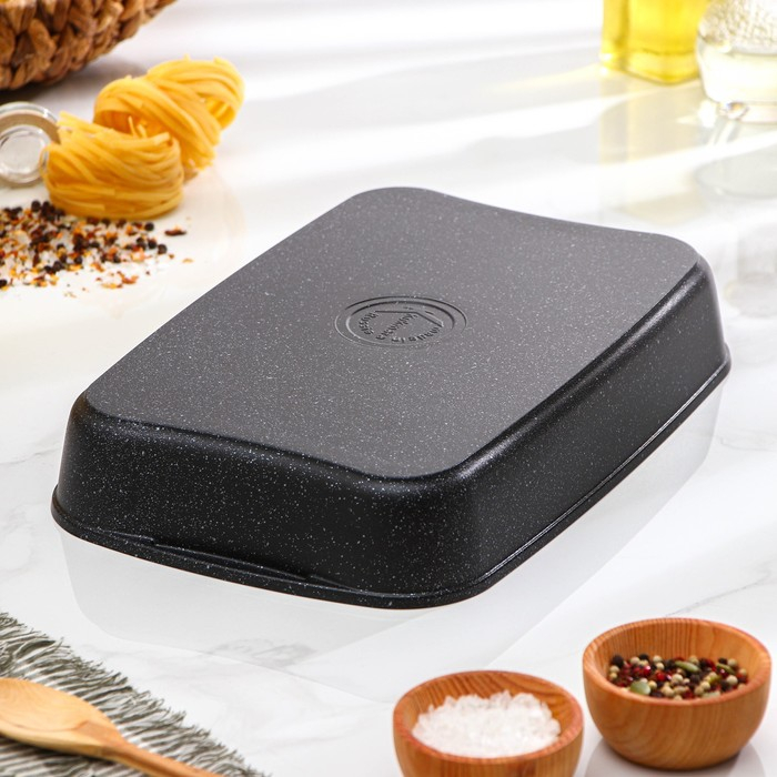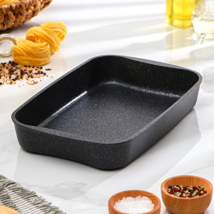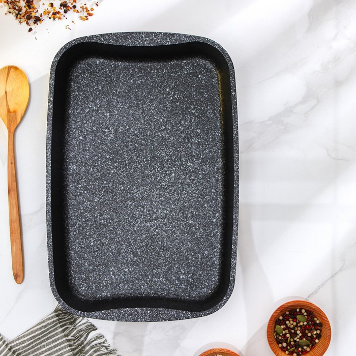 Противень, 33,5×22×5,5 см, антипригарное покрытие, цвет тёмный мрамор