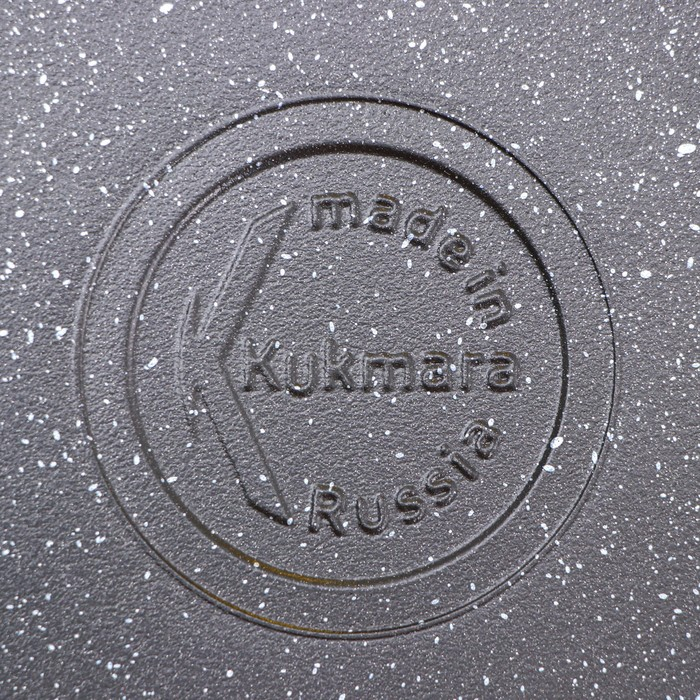 Посуда Kukmara «Мраморная» изготовлена из литого алюминия и покрыта инновационным антипригарным мраморным покрытием на водной основе, усиленным сверхтвёрдыми частицами минералов.