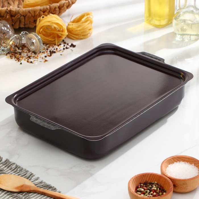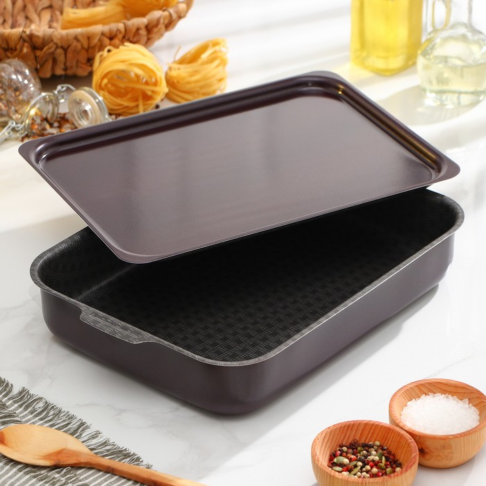 Противень «Хозяюшка», 23×30 см, h= 6 см, металлическая крышка, антипригарное покрытие, цвет бордовый