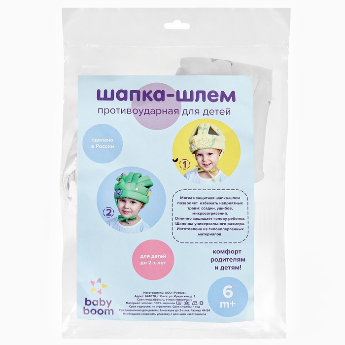 Противоударная шапка-шлем предназначена для защиты головы ребенка начинающего ползать или ходить. Шлем регулируется по объему головы. Размер 44-56. Для детей от 6 мес. до 2-х лет.