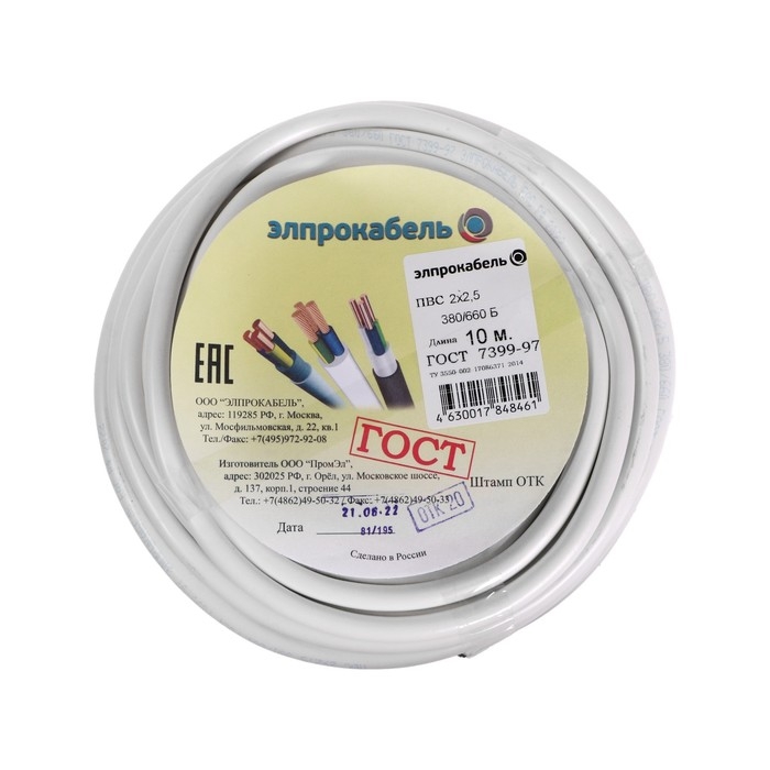 Провод гибкий круглый ПромЭл ПВС, 2х2.5, 10 м, ГОСТ