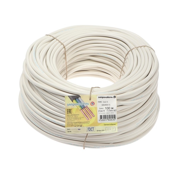 Провод гибкий круглый ПромЭл ПВС, 2х2.5, 100 м, ГОСТ