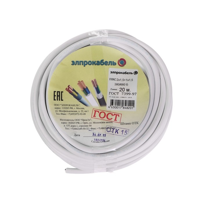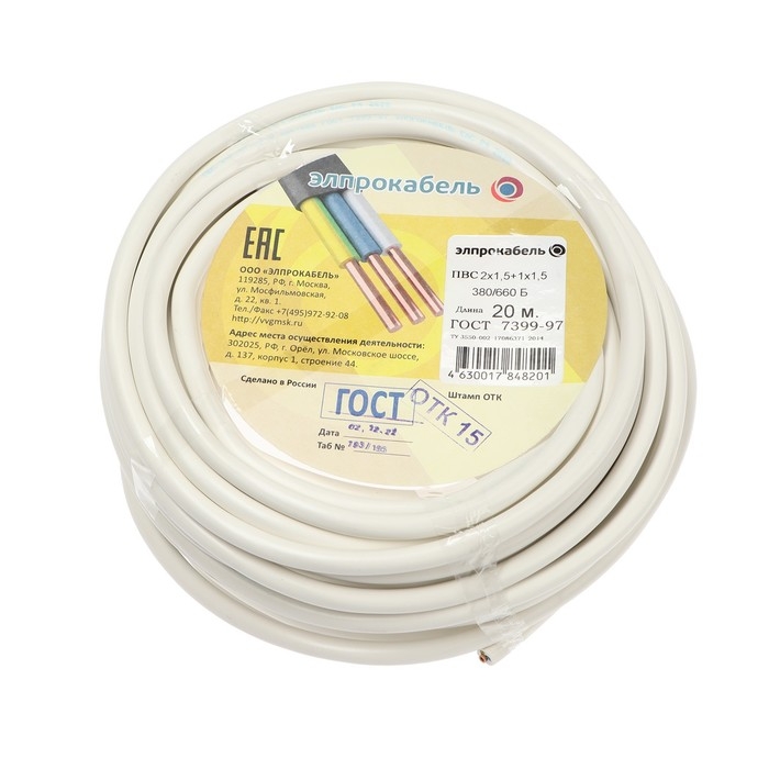 Провод гибкий круглый ПромЭл ПВС, 3х1.5, 20 м, ГОСТ