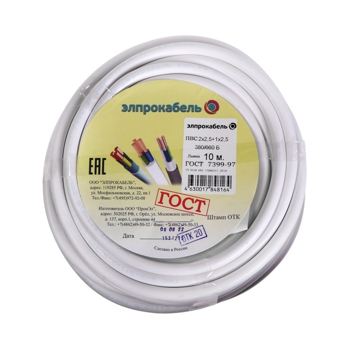 Провод гибкий круглый ПромЭл ПВС, 3х2.5, 10 м, ГОСТ