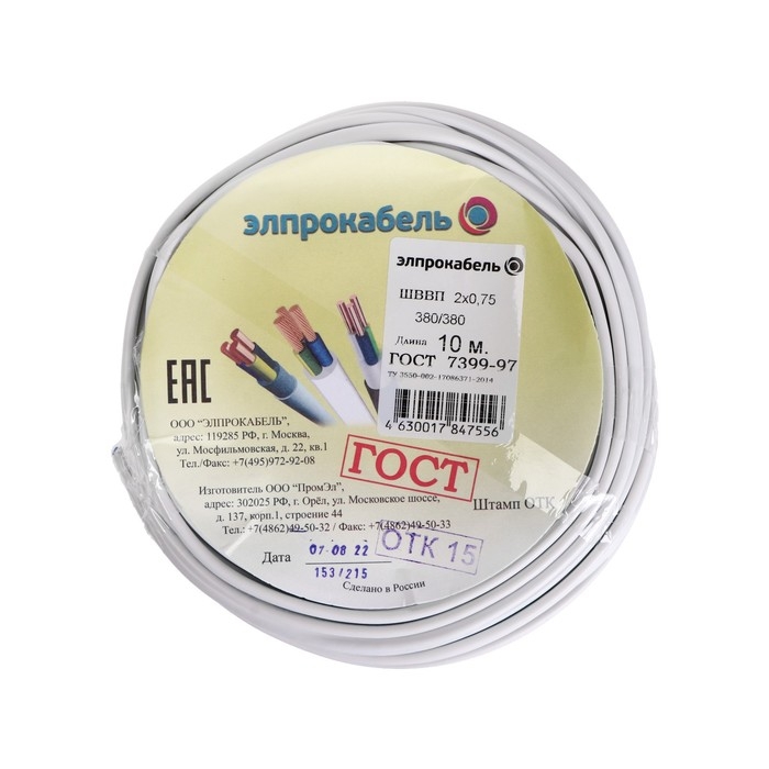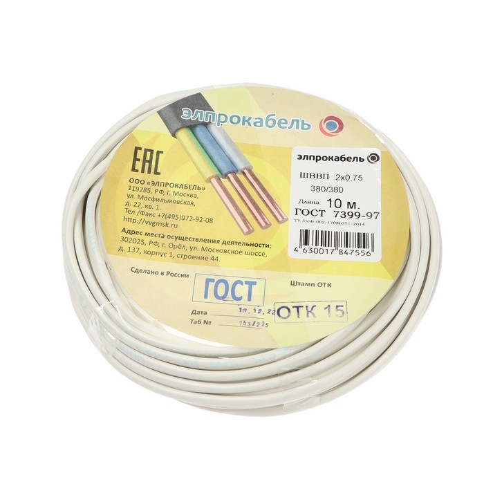 Провод гибкий плоский ПромЭл ШВВП, 2х0.75, 10 м, ГОСТ