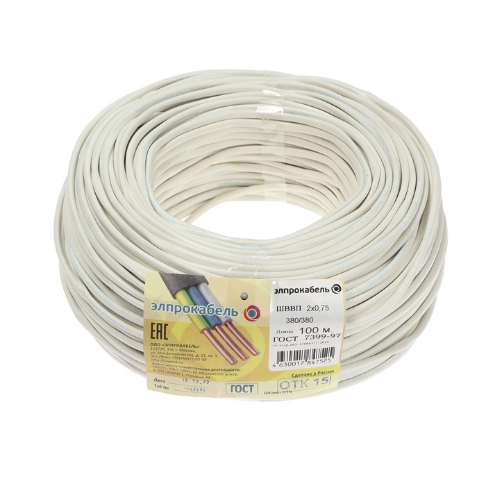 Провод гибкий плоский ПромЭл ШВВП, 2х0.75, 100 м, ГОСТ