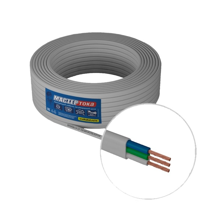 Провод "Мастер Тока" ПуГНПбм, сечение 3х2.5 мм2, 100 м, белый