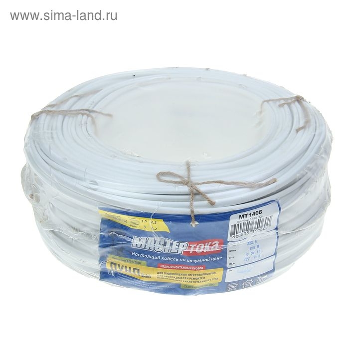 Провод "Мастер Тока" ПУНПбм, сечение 2х2.5 мм2, 100 м, белый