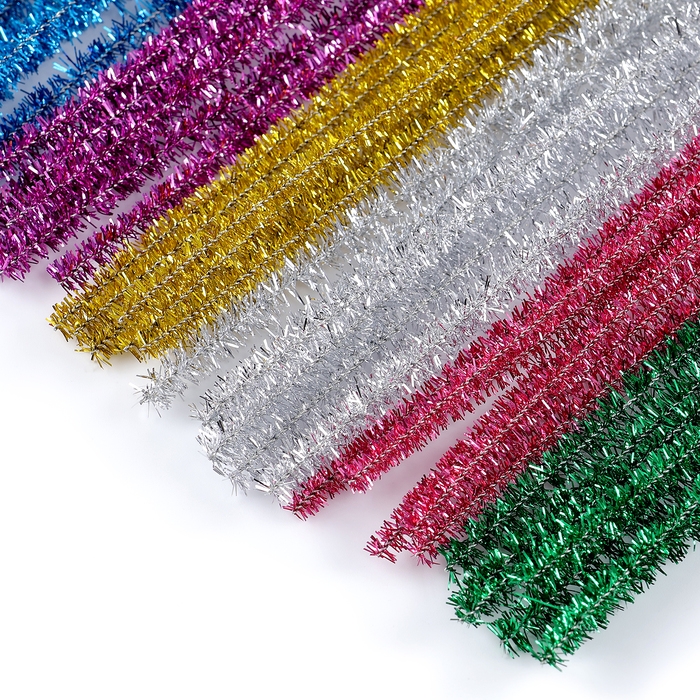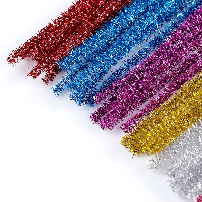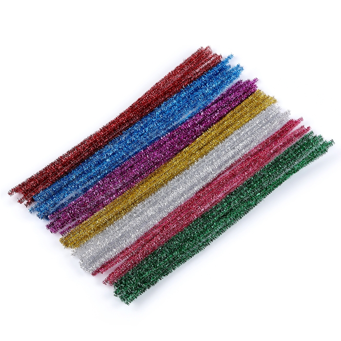 Проволока с ворсом для поделок и декорирования, набор 100 шт., цвета МИКС с блеском