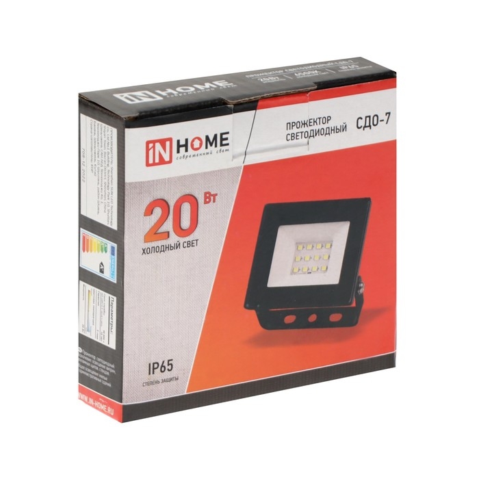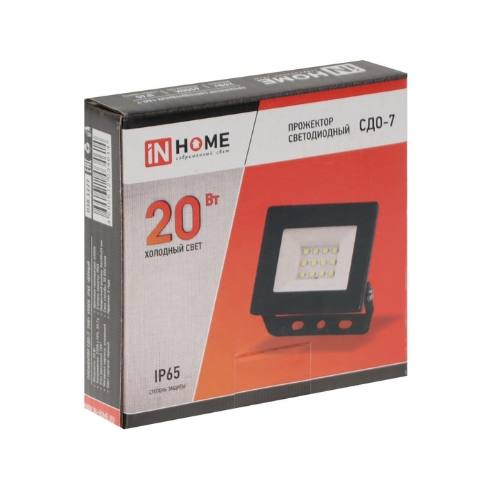 Прожектор светодиодный IN HOME СДО-7, 20 Вт, 230 В, 6500 К, IP65, черный