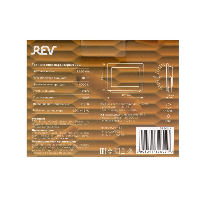 Прожектор светодиодный REV, 30 Вт, 4000 К, 2550 Лм, IP65