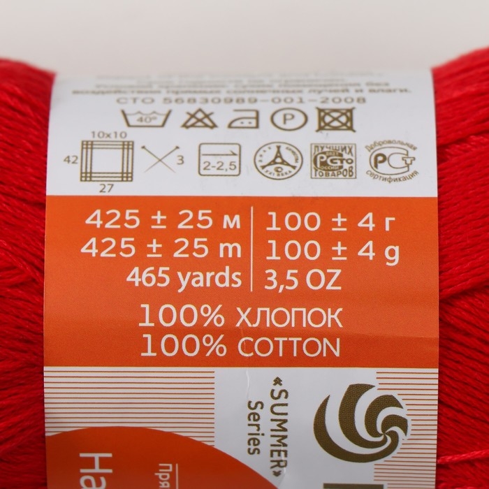 Пряжа "Хлопок натуральный" 100% хлопок 425м/100гр (06-Красный)