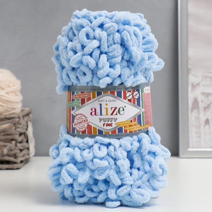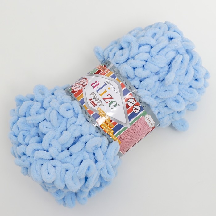 Пряжа "Puffy fine" 100% микрополиэстер 14,5м/100г (218 голубой)