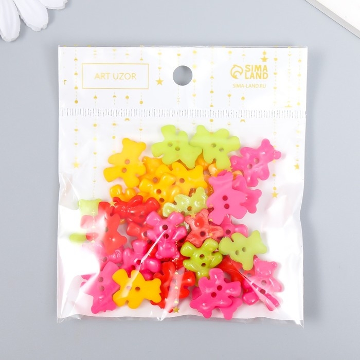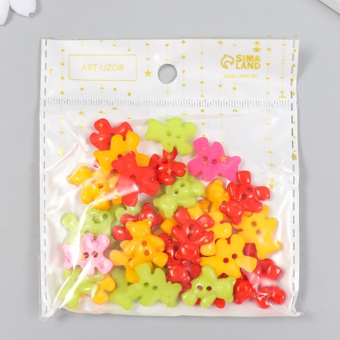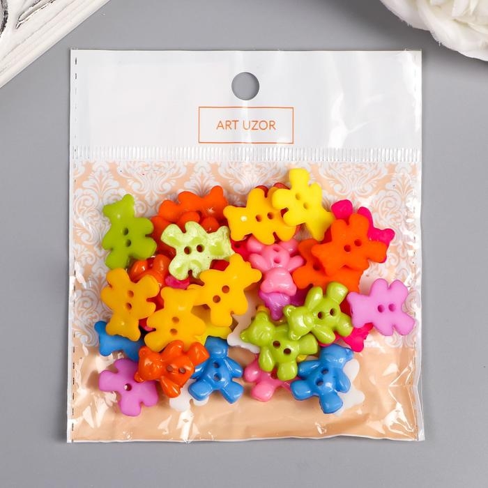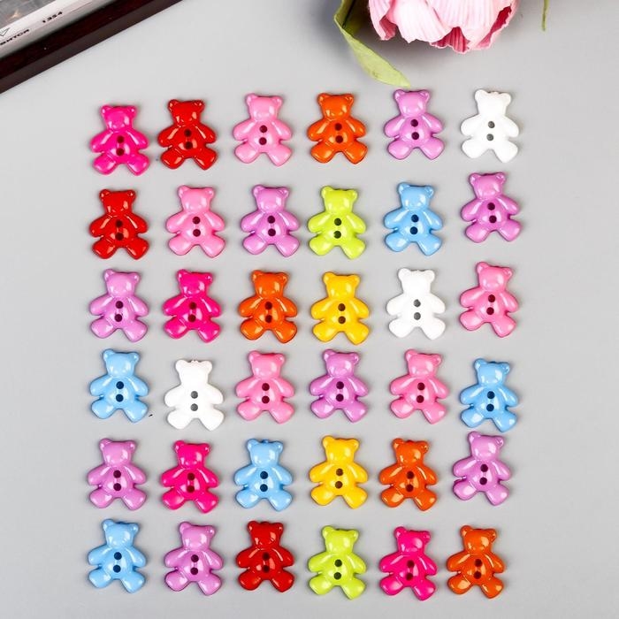 Пуговицы пластик для творчества 2 прокола "Мишки" набор 36 шт 1,6х1,9 см