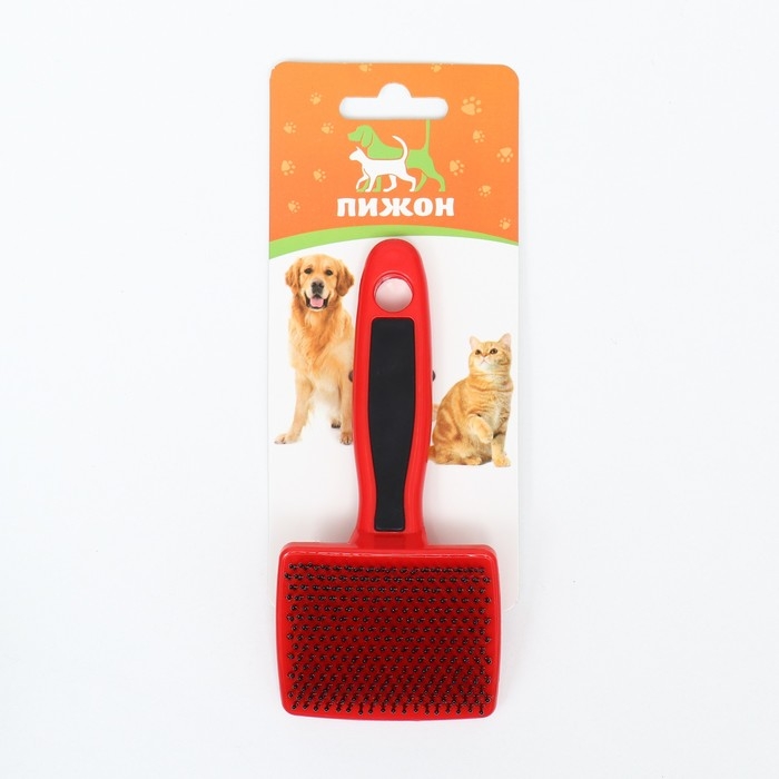 Пуходерка пластиковая мягкая с закругленными зубьями, малая, 6 х 13,5 см, чёрно-красная