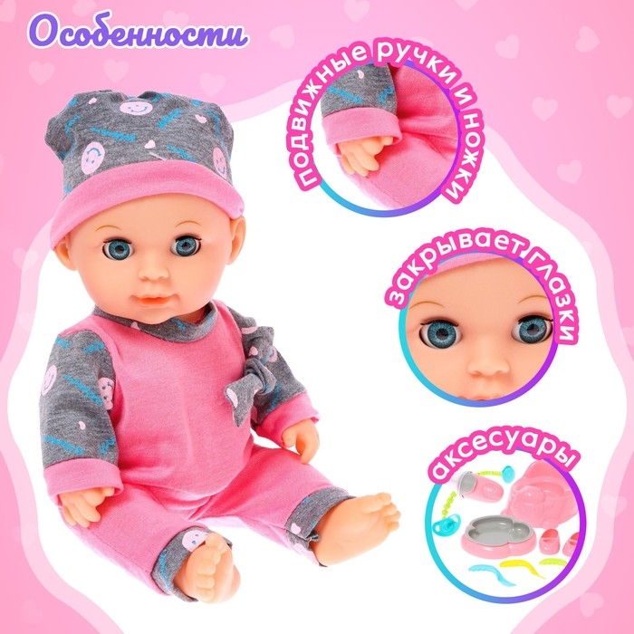 Пупс функциональный «Кроха» в костюмчике, с набором аксессуаров, пьёт, писает
