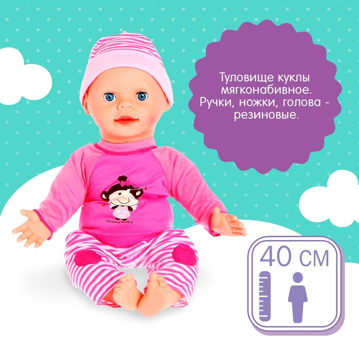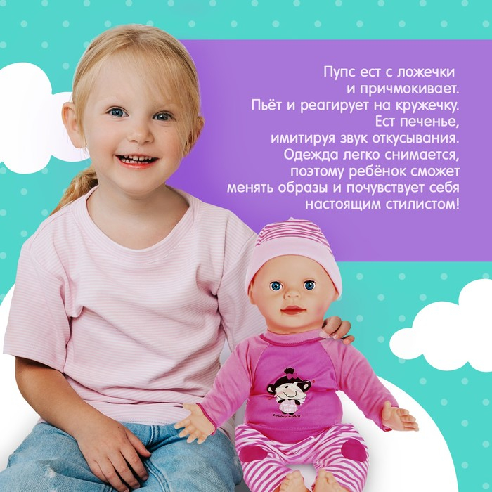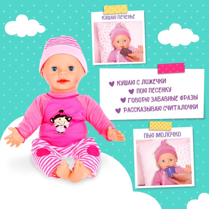 Пупс интерактивный «Малыш», 6 функций, озвученный, кушает, пьёт, играет в ладушки, высота 38 см