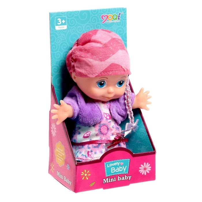 Высота куклы: 14 cм. Пупс пластиковый. Одежда снимается.