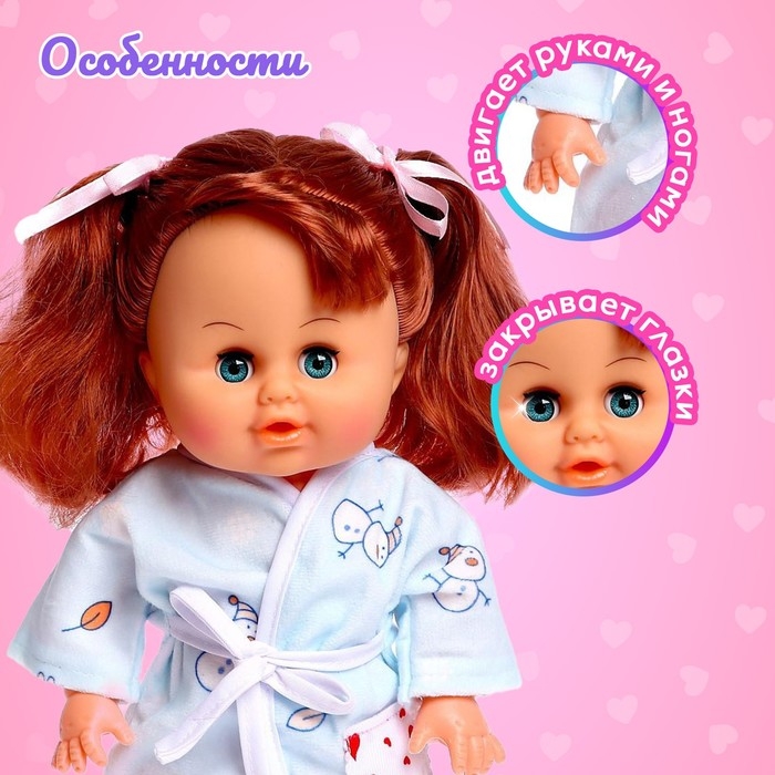 Закрывает глаза, Звуковые функции, Можно купать, Писает, Плачет, Пьёт, Эмоции