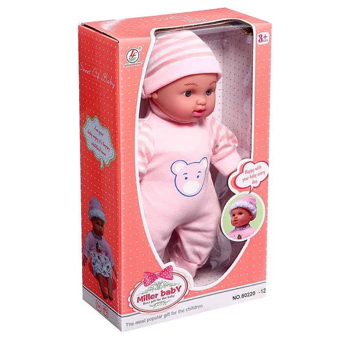 Все предметы выполнены из пластика с использованием безопасных красителей. Высота пупса — 31,5 см.