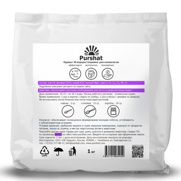 Пуршат-М водорастворимое средство для клематисов, 1кг